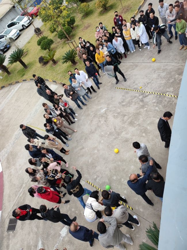 二、铁人四项比赛:强中更有强中手,巾帼不让须眉。谁是真正的英雄?铁人四项比赛,充分表明乐鱼(中国)是个藏龙卧虎之地。铁人四项比赛包括踢毽子、跳绳、俯卧撑加趣味答题。女同胞在踢毽子、跳绳方面占优势,小伙子在俯卧撑上显本领。最终,管理+财务部门的参赛选手通过合作、各司其职,以最快速度赢得了比赛,取得了第一名。